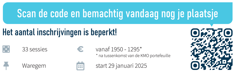 Het aantal deelnemers wordt beperkt zodat persoonlijke ondersteuning op maat en optimale kennisoverdracht mogelijk is. Het aantal inschrijvingen is beperkt. Wees er snel bij!
